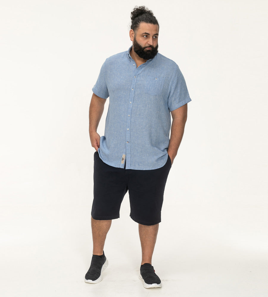Duża męska koszula bawełniano lniana krótki rękaw FALMOUTH -D555 niebieska