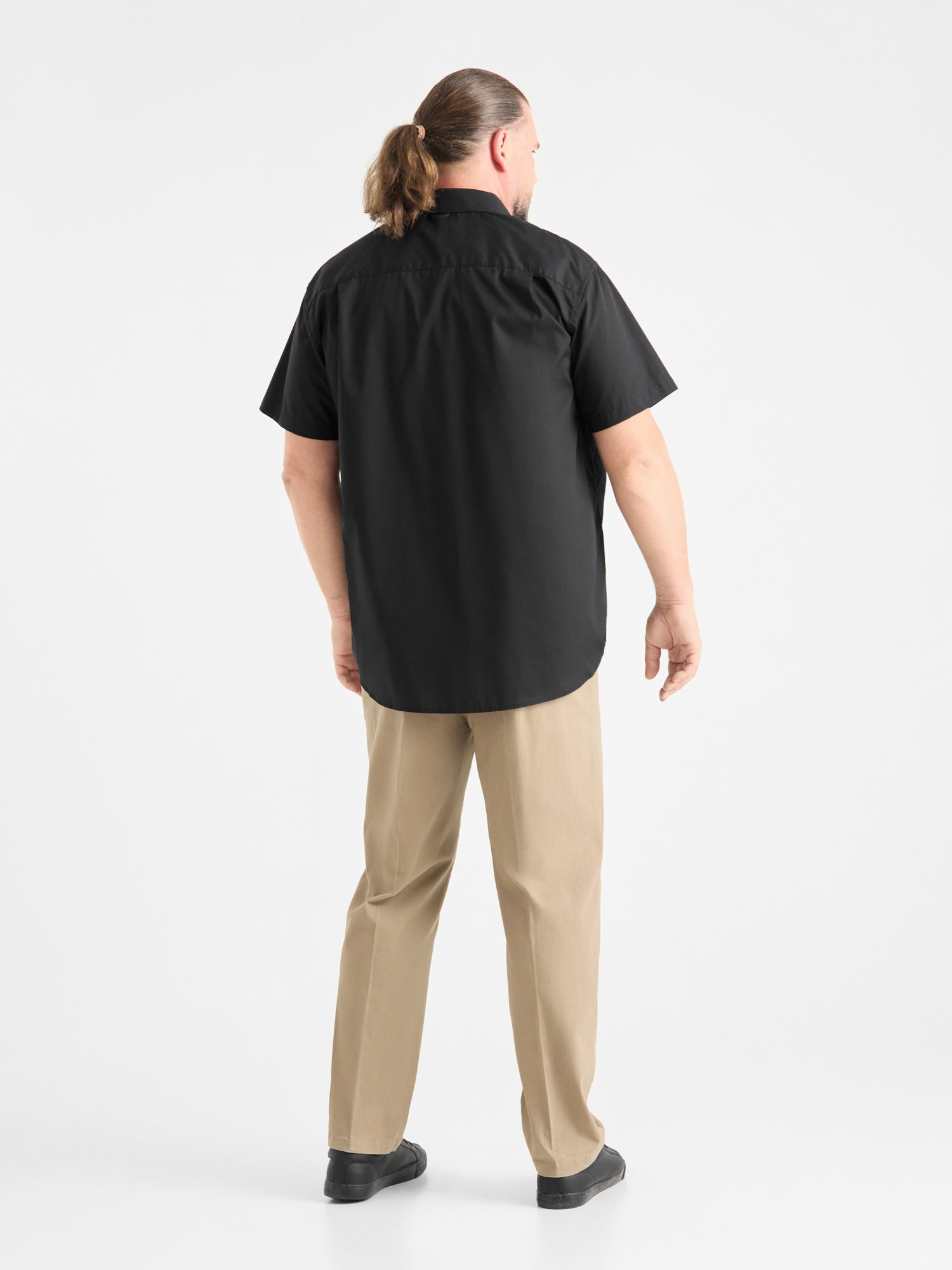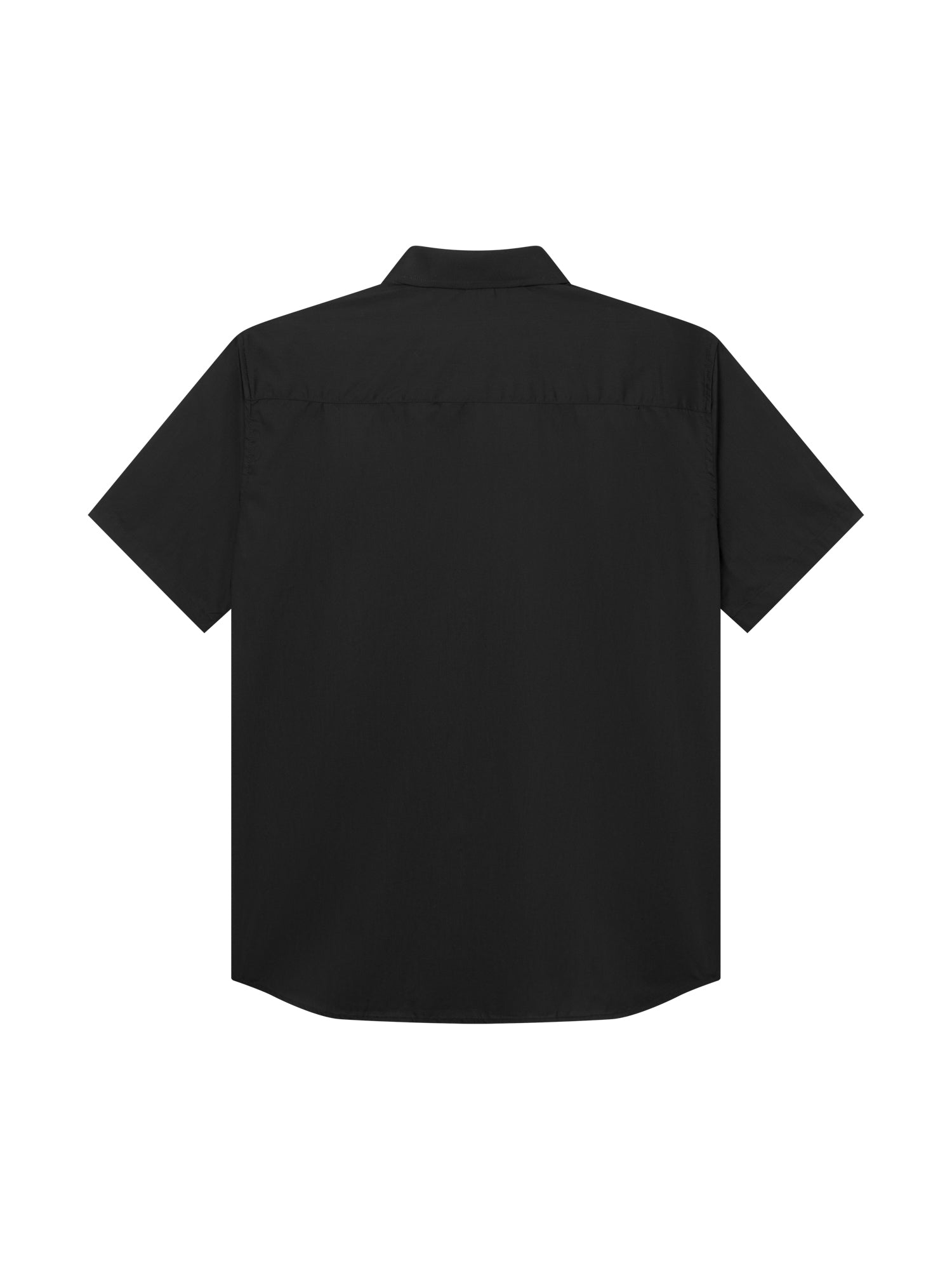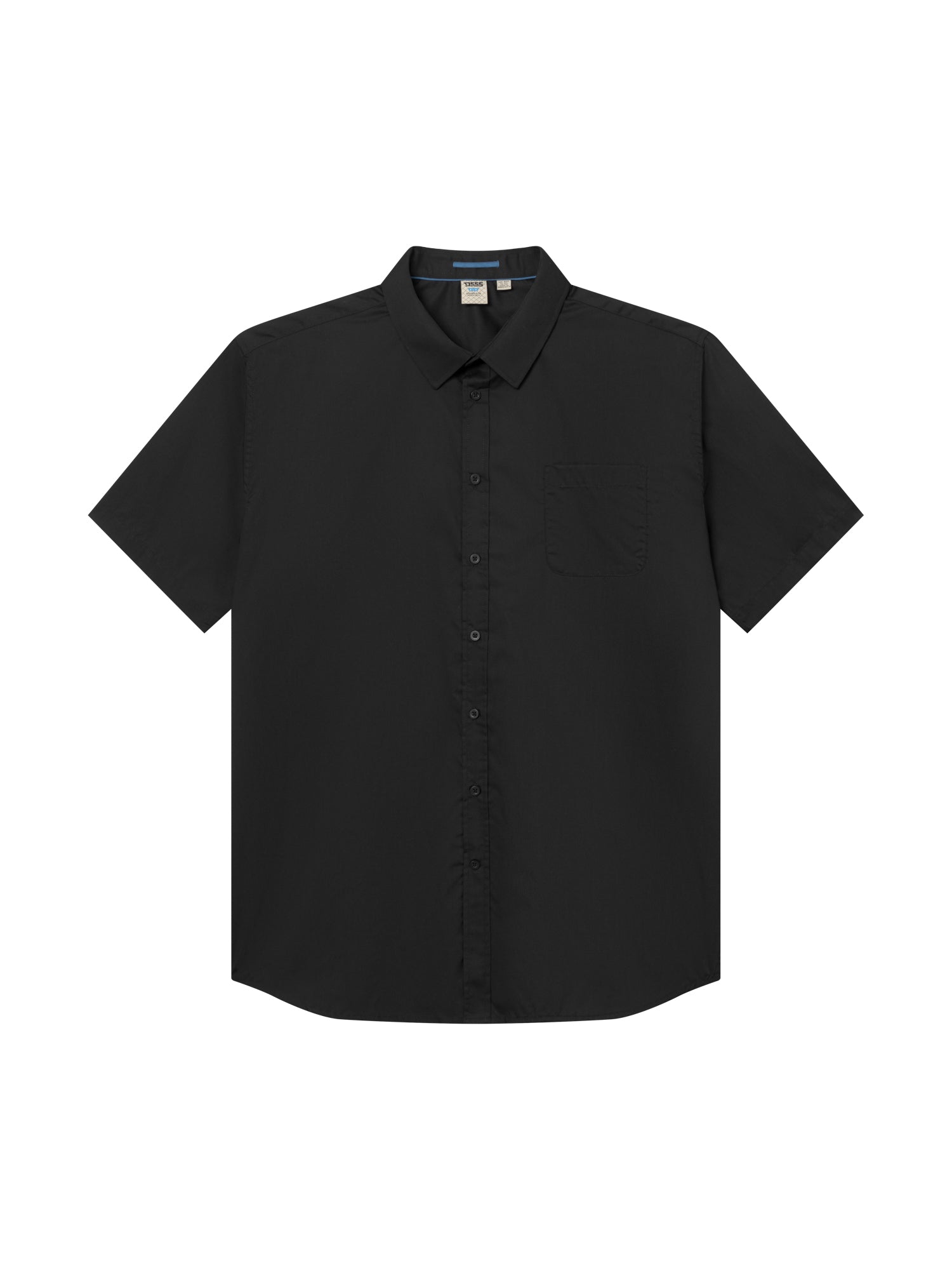 Klasyczny kołnierzyk typu button-down oraz regularny krój sprawiają, że koszula dobrze prezentuje się zarówno w stylizacjach codziennych, jak i półformalnych. Czerń nadaje całości elegancji i ponadczasowego charakteru, a krótki rękaw czyni ją idealnym wyborem na cieplejsze dni.