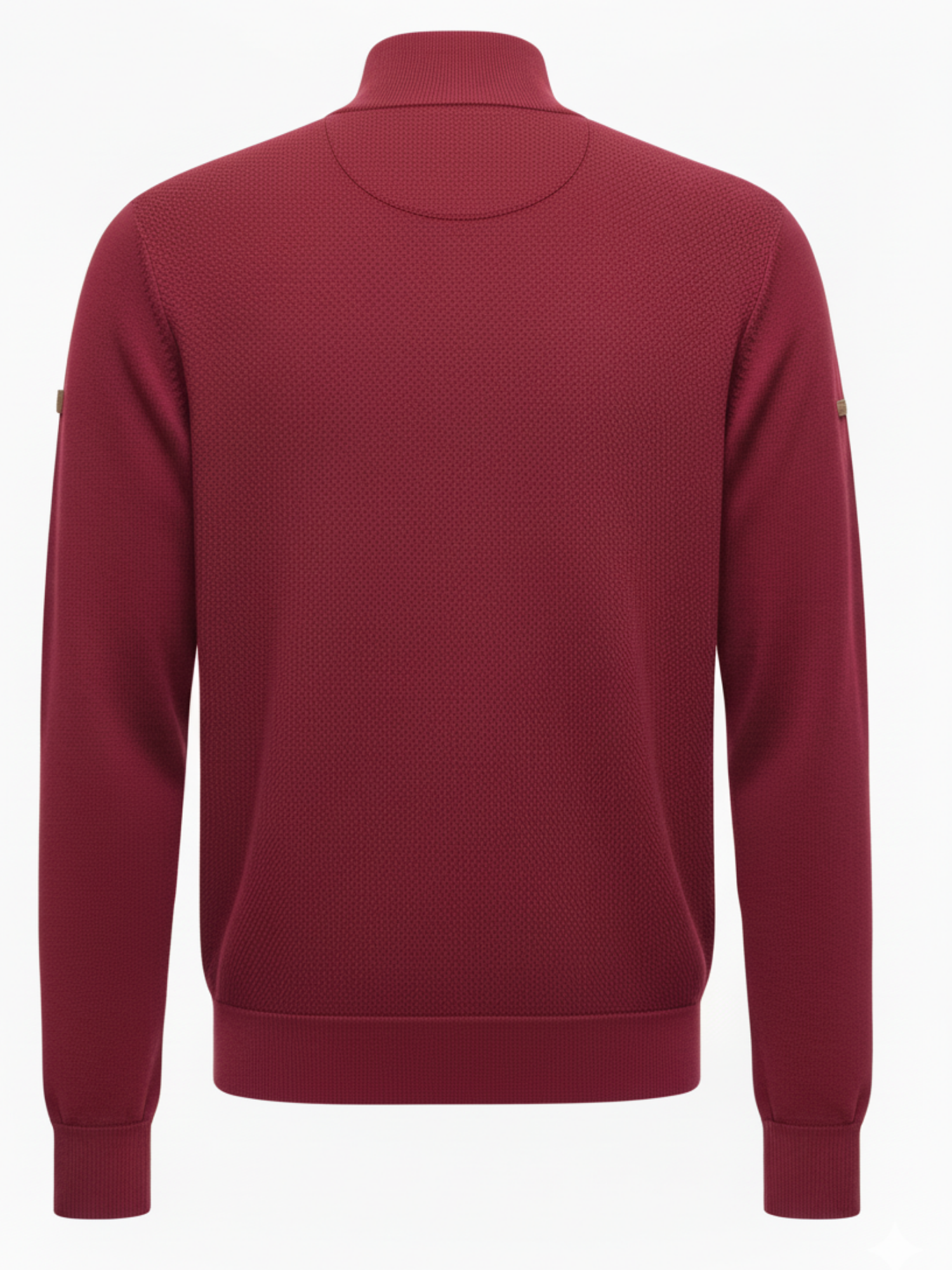 Duży męski sweter bawełniany CARTER na zamek do połowy w kolorze bordowym