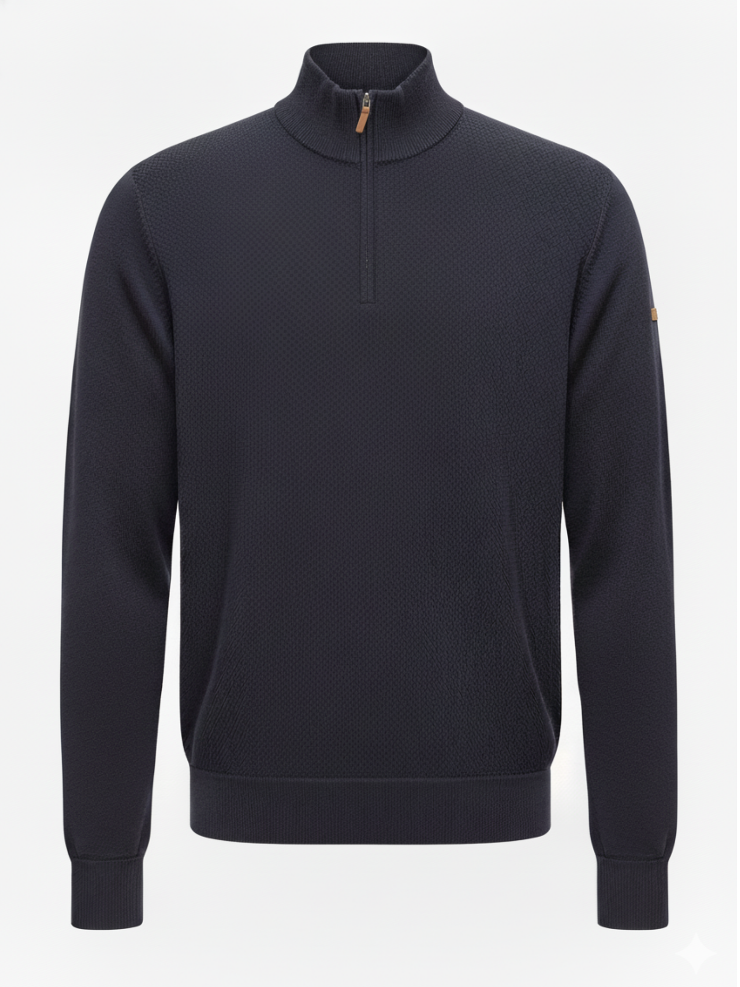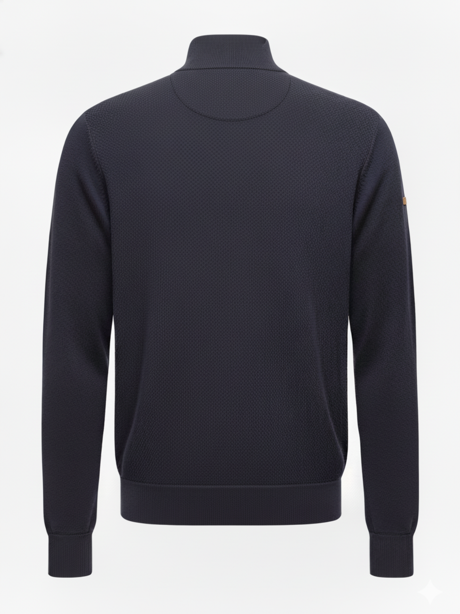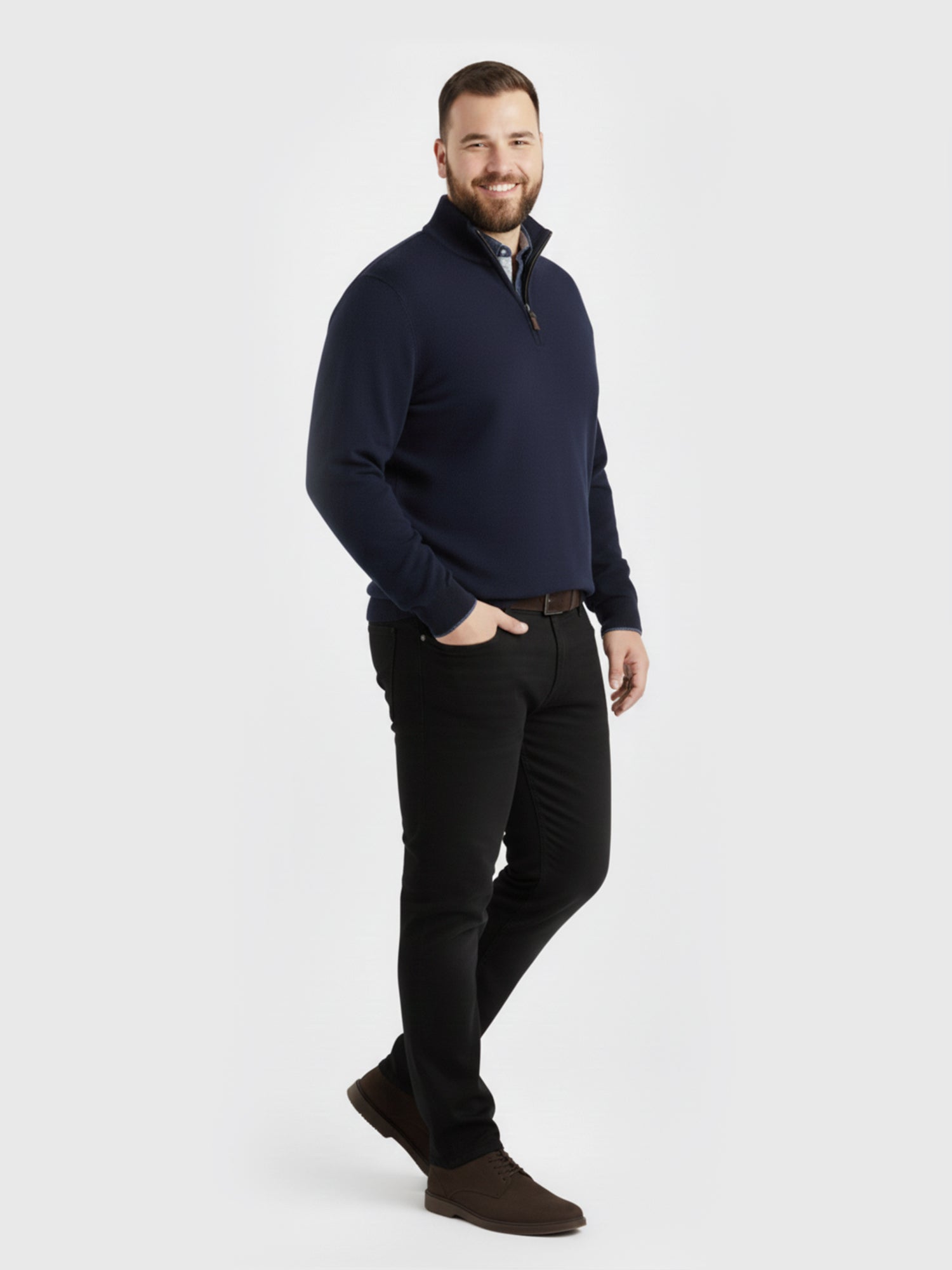 Duży męski sweter bawełniany CARTER na zamek do połowy granatowy