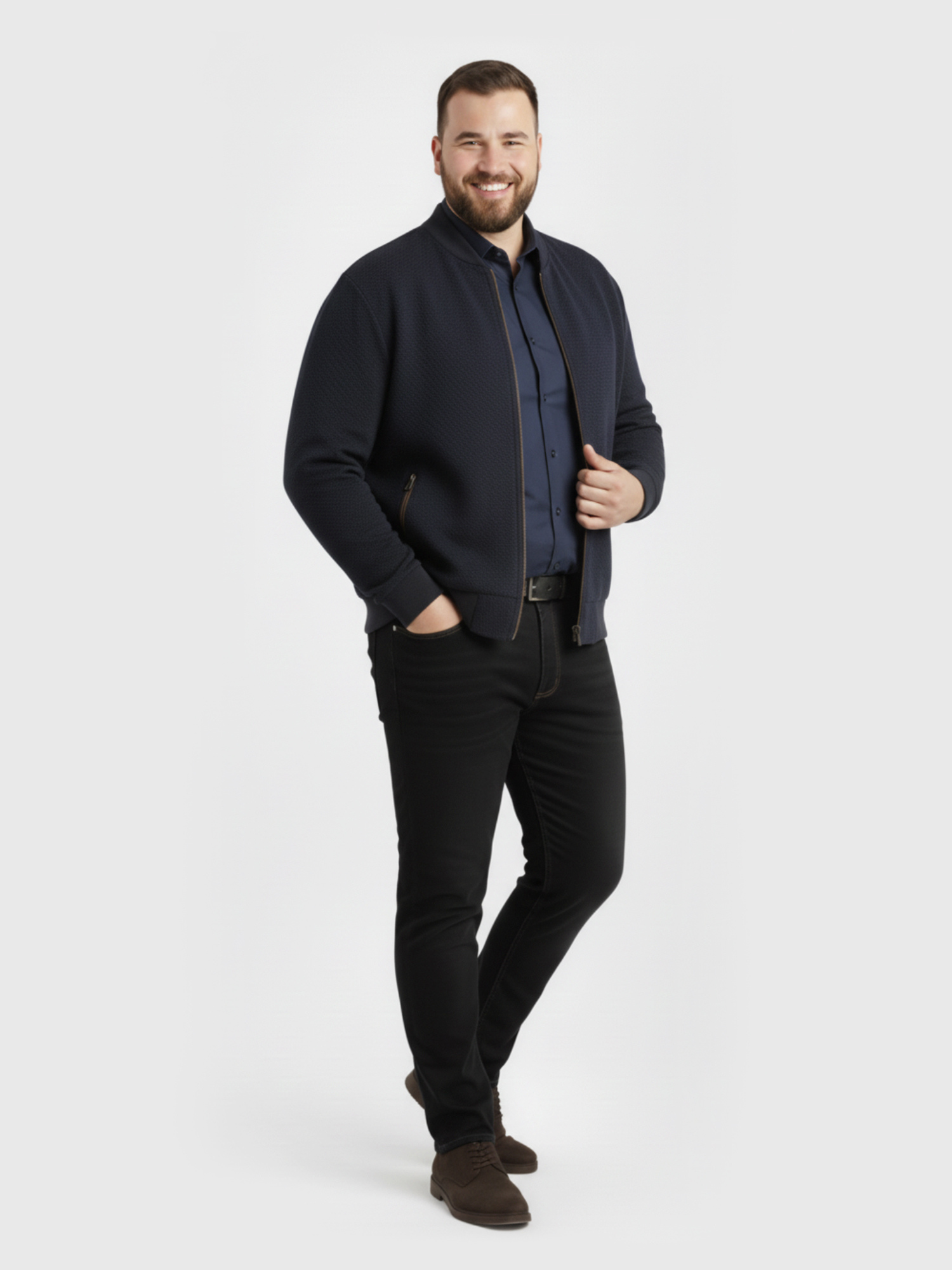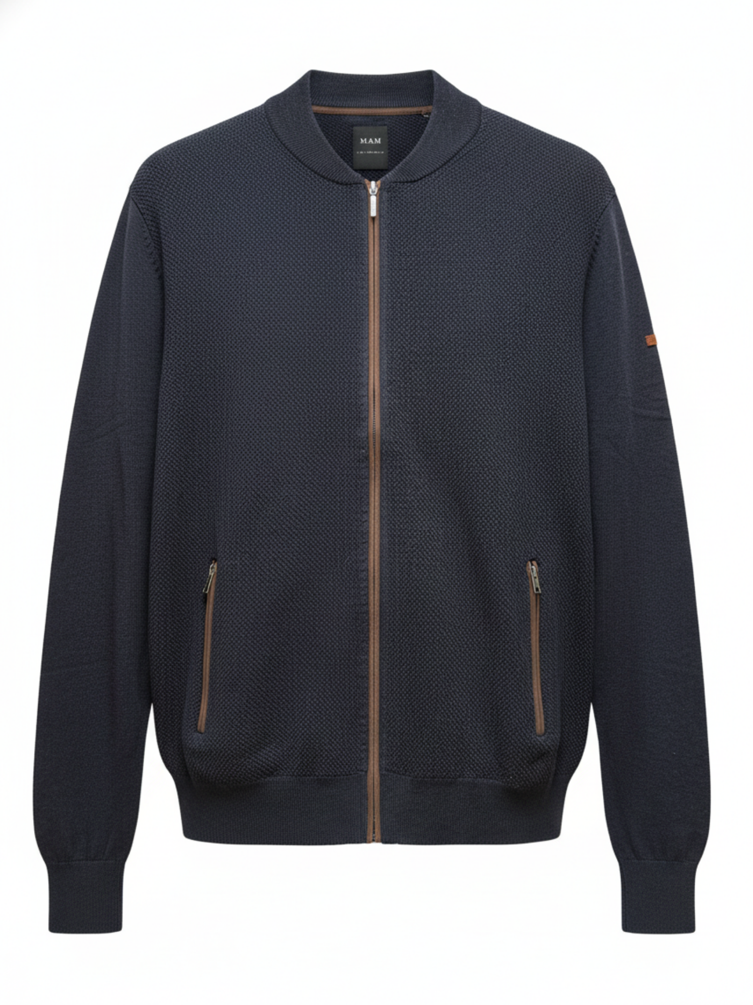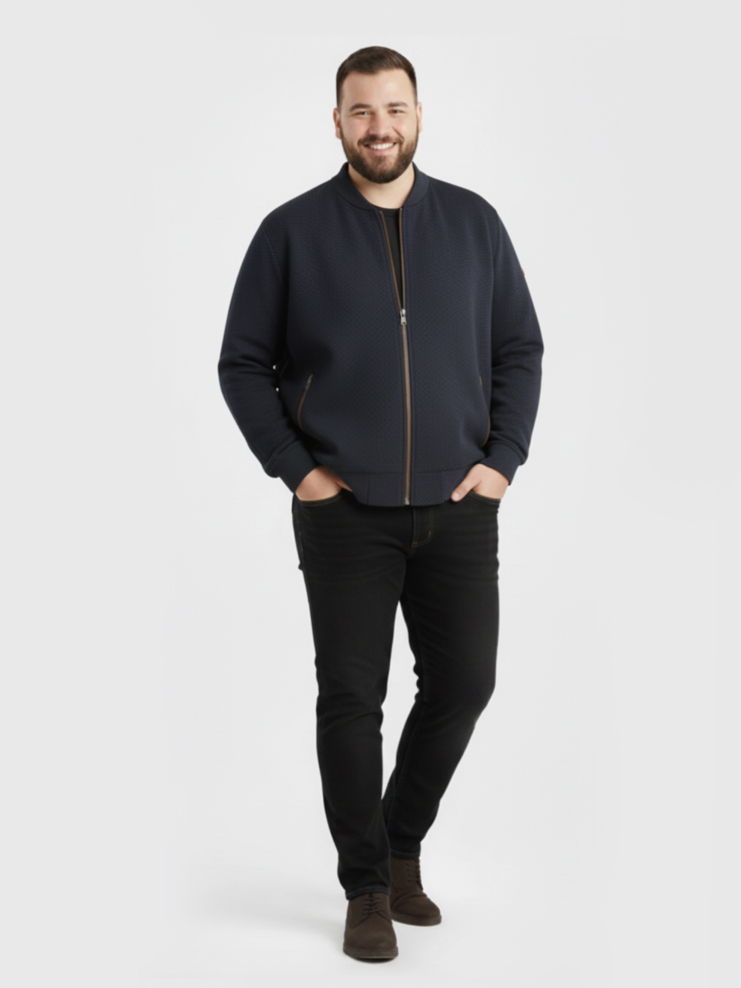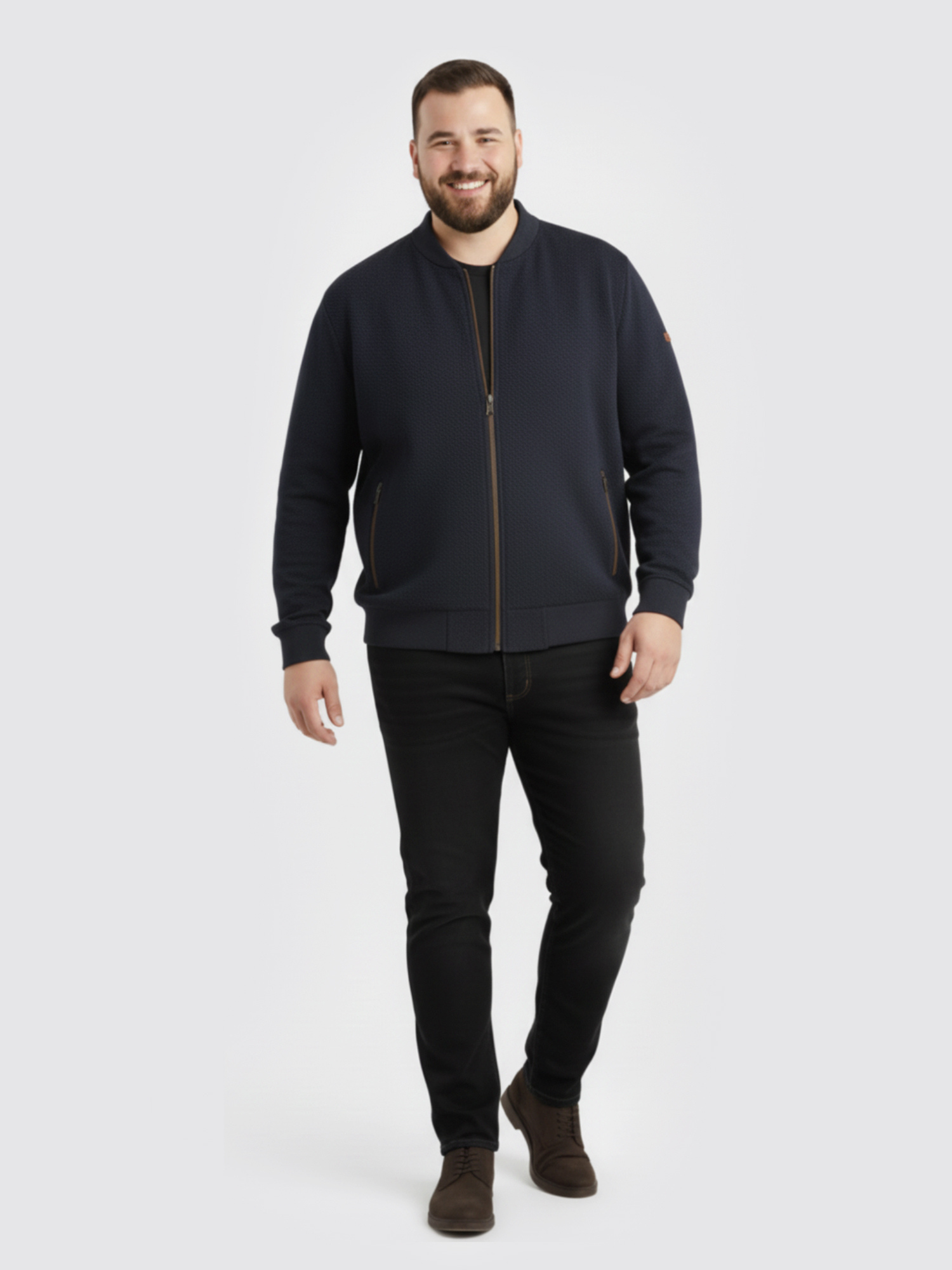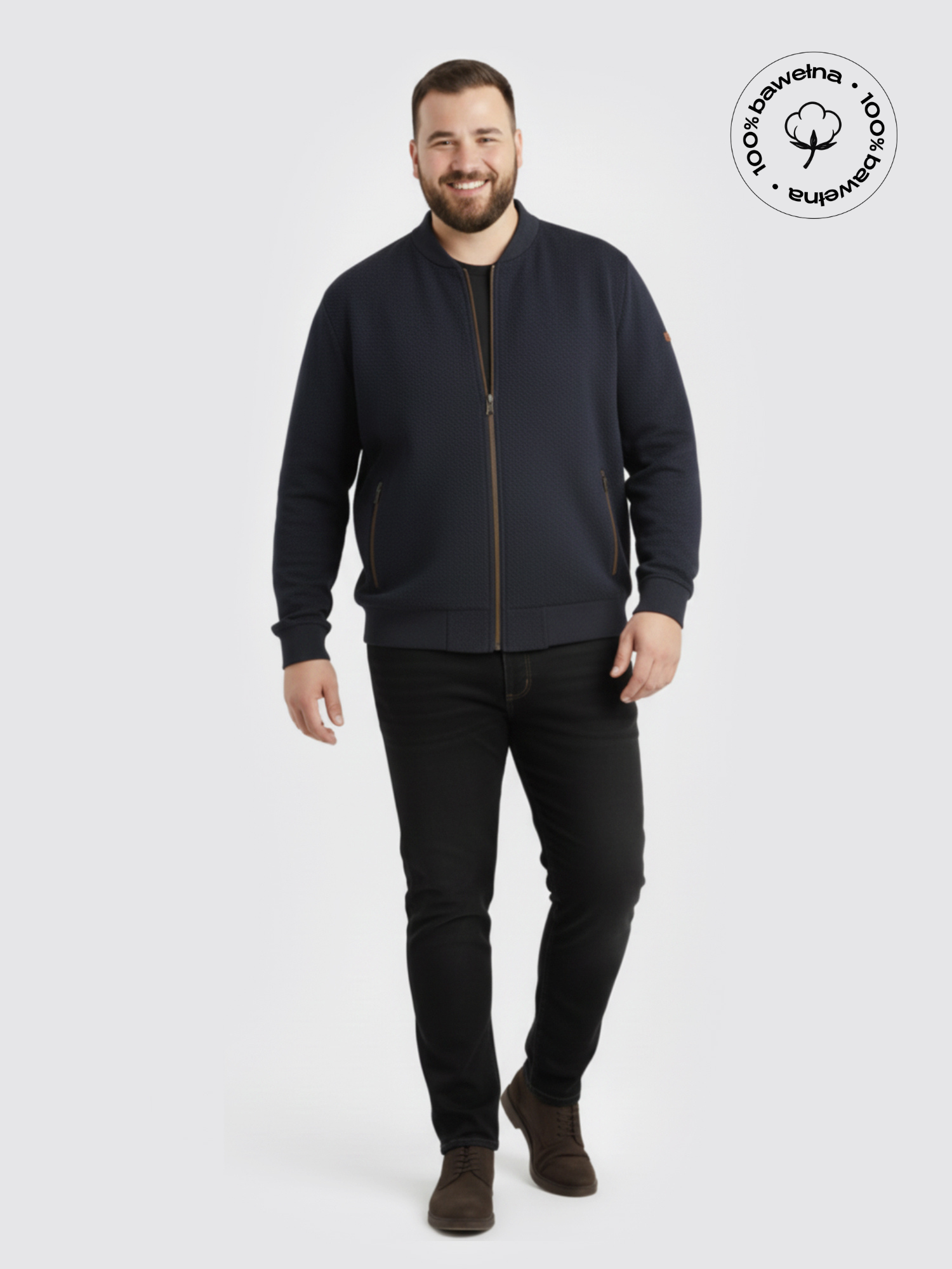 Duży męski sweter bawełniany na zamek THOMAS w kolorze granatowym