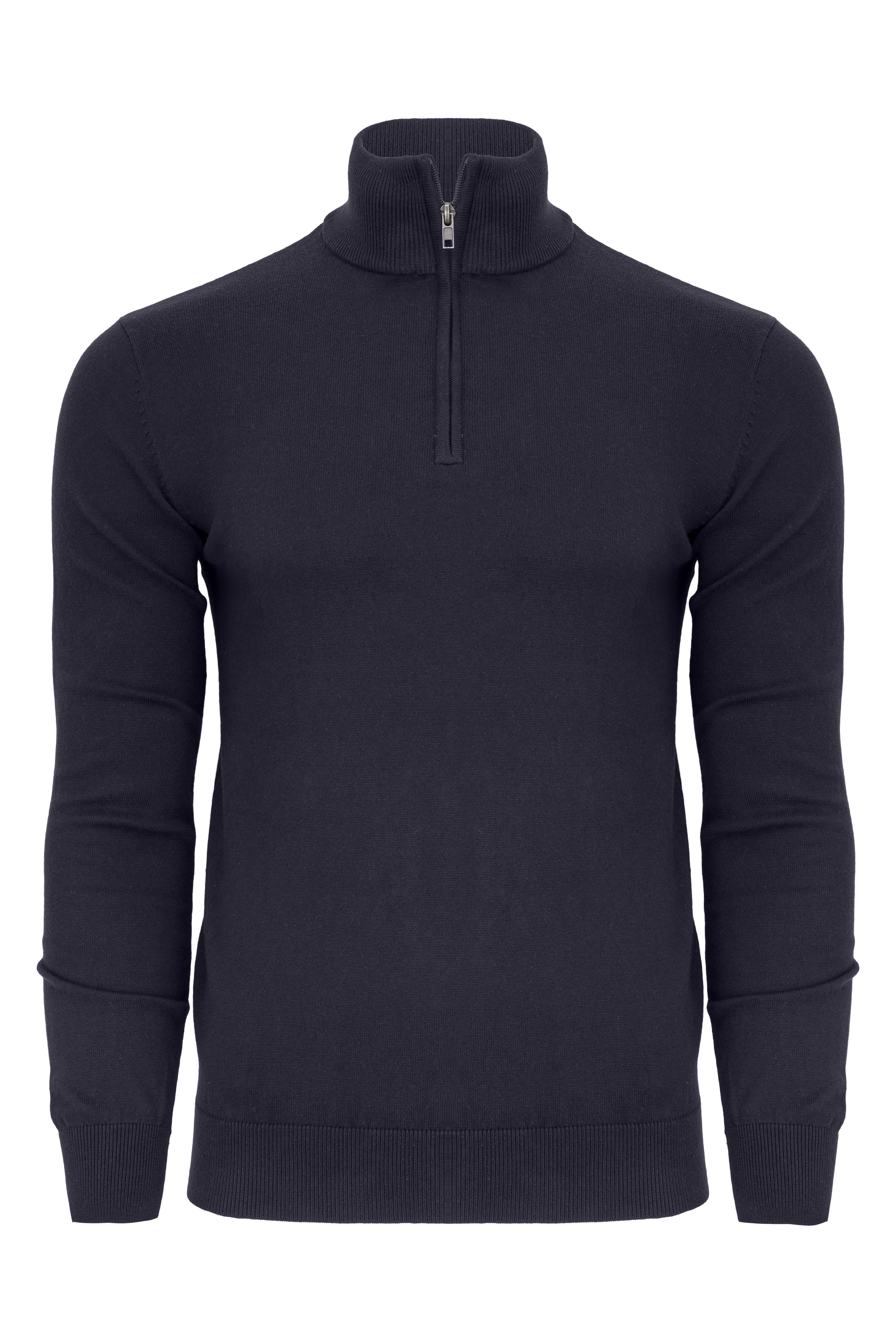 Duży męski sweter bawełniany WILLIAM z zamkiem pod szyją granatowy