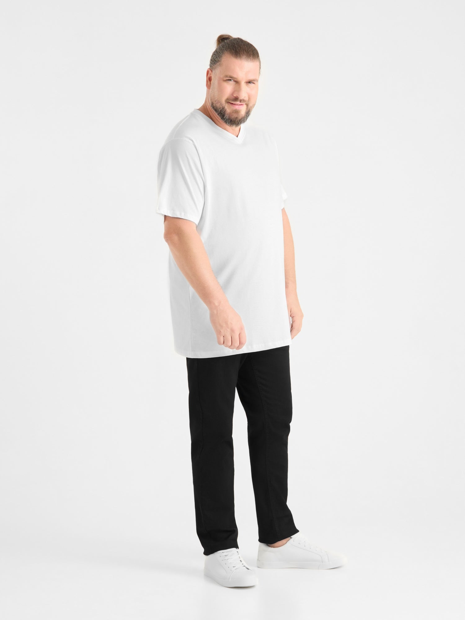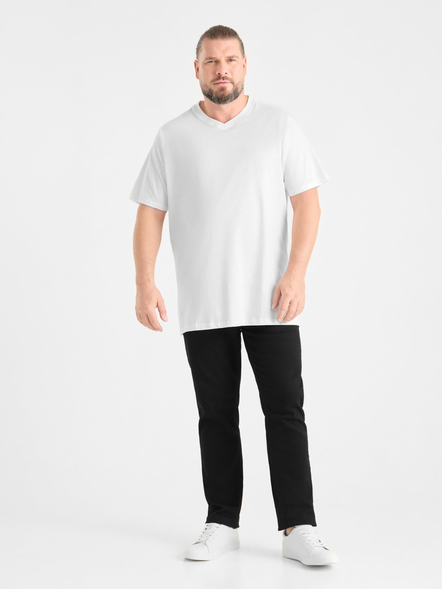 Duży męski T-shirt bawełniany V-neck SIGNATURE D555 Biały