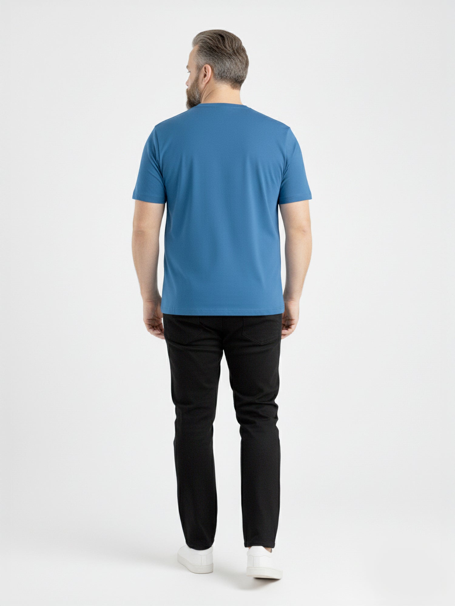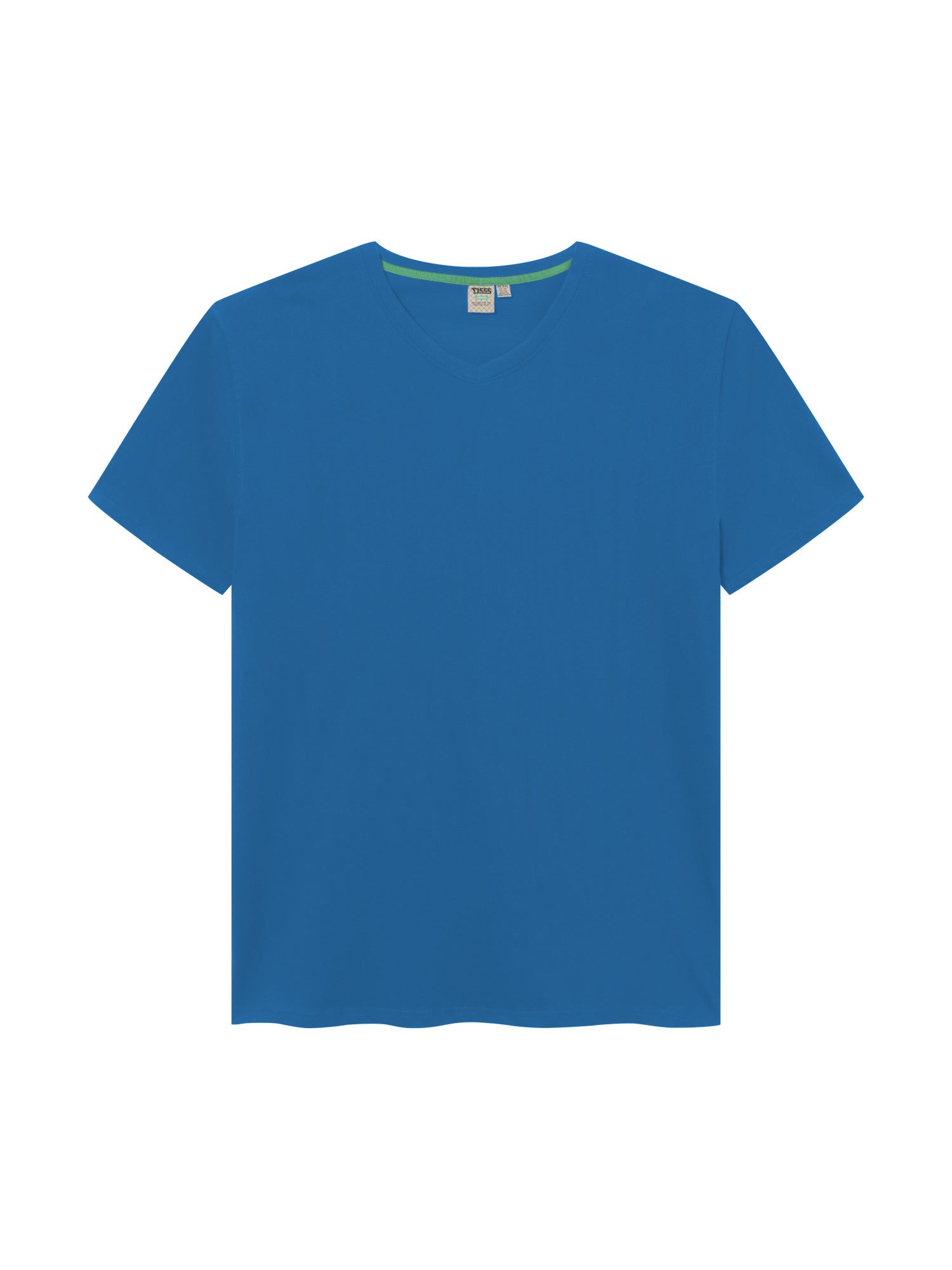 Duży męski T-shirt bawełniany V-neck SIGNATURE D555 Ciemnoniebieski