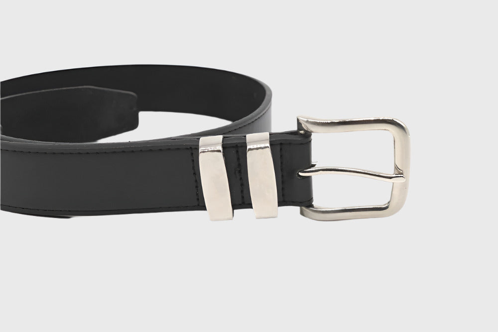 Długi męski elegancki pasek skórzany z klamrą NOAH czarny