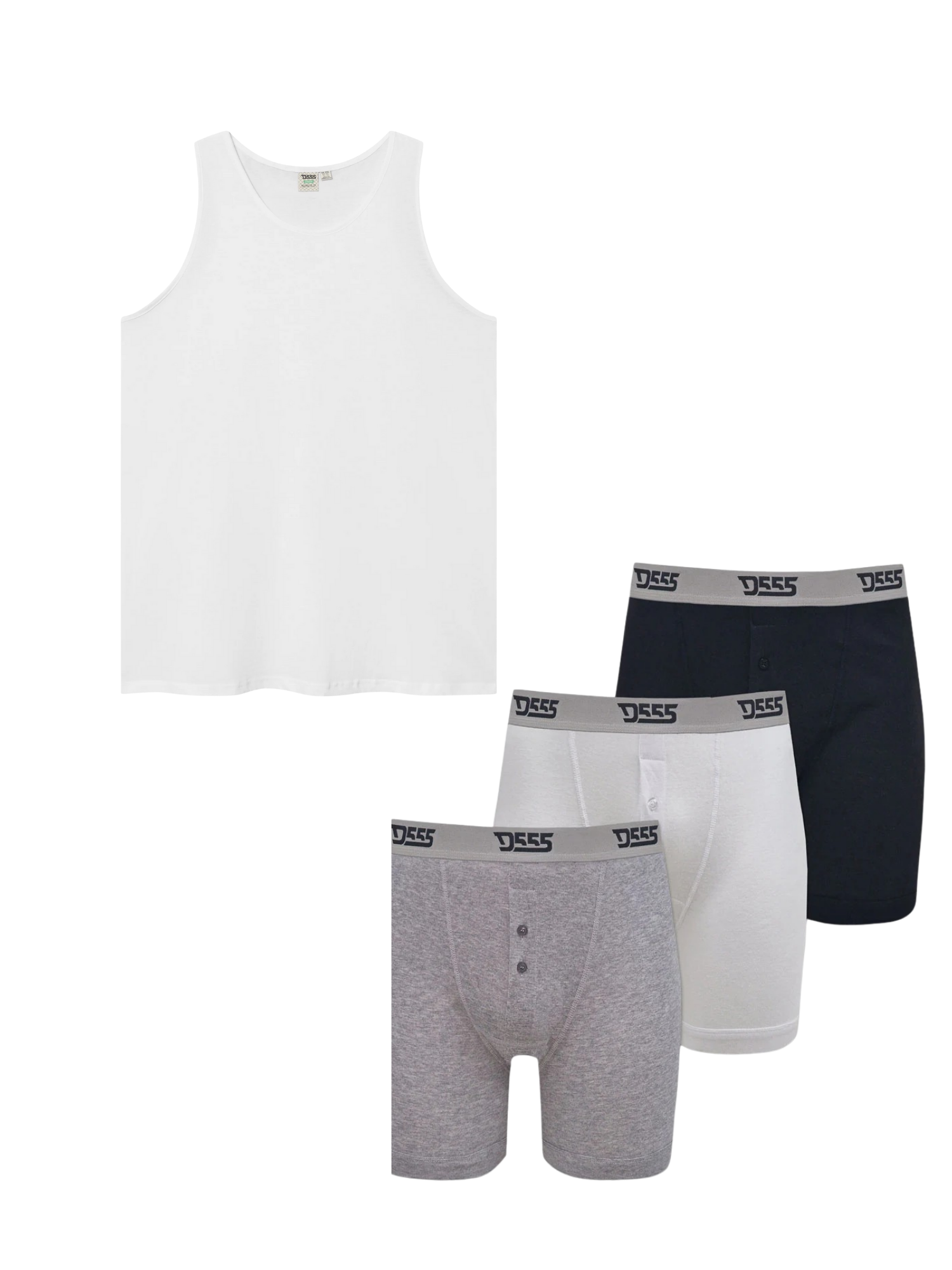 Zestaw duży męski podkoszulek FABIO D555 biały i męskie bokserki 3-pak DRIVER 2 D555 trzy kolory